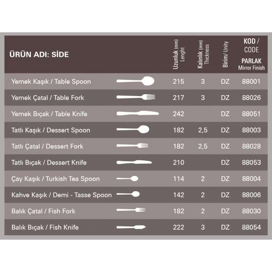 SİDE ÇATAL KAŞIK BIÇAK